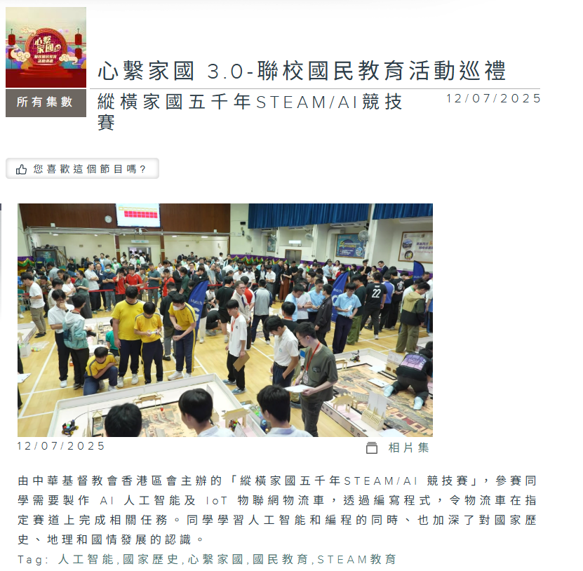 2015-02-18 | 本校榮獲2014香港特區政府施政十件大事評選「最踴躍參加學校獎」及 本校三名學生代表接受RoadShow的採訪 |