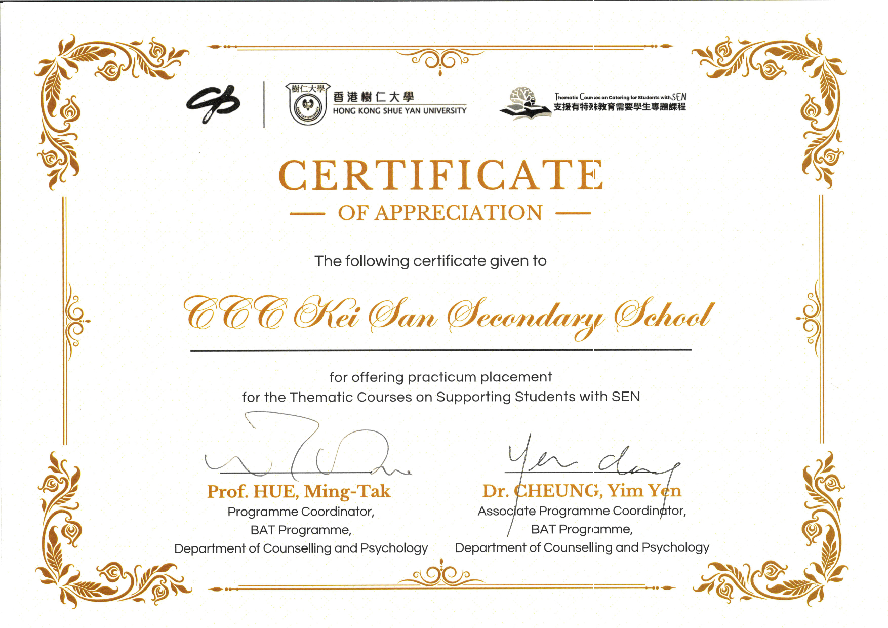 2025-08-31 | 本校為香港樹仁大學同學提供實習機會,獲頒嘉許狀。 | ![]() |